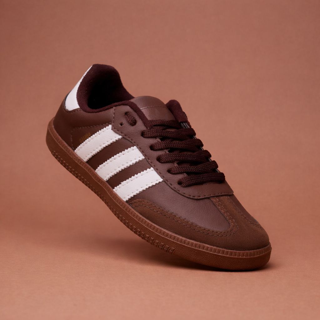 Produzido com materiais que garantem resistência e estilo, o tênis Adidas Samba tem solado emborrachado para evitar escorregões e estrutura adaptada para o uso diário. Seu tom marrom combina facilmente com diversos looks casuais ou esportivos, ideal para quem busca um sapato versátil e cheio de história.